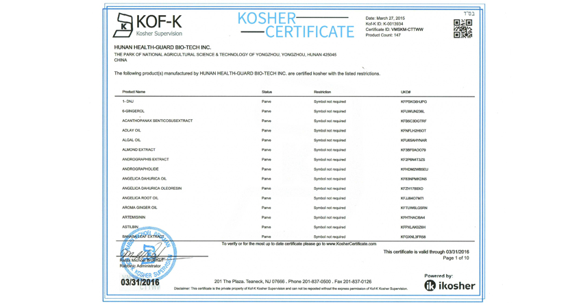 • Kosher認(rèn)證