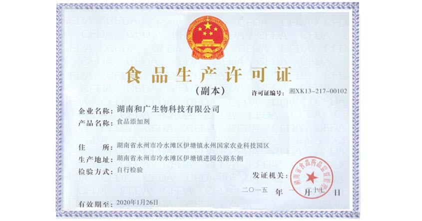 我司于2015年1月27日取得了食品生產(chǎn)許可證(QS證書)。
