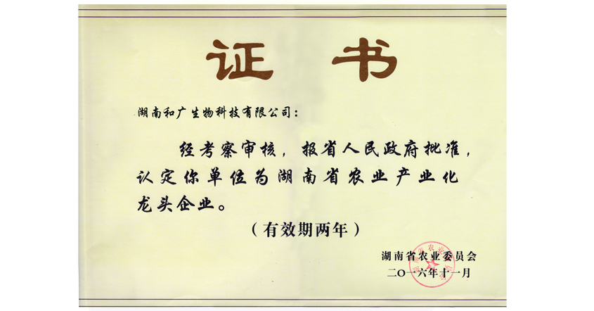 • 湖南省農(nóng)業(yè)產(chǎn)業(yè)化龍頭企業(yè)