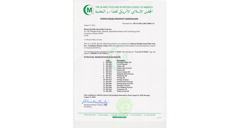 • IFANCA HALAL認(rèn)證