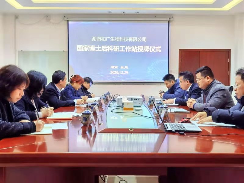 12月29日,和廣生物博士后科研工作站授牌儀式在湖南和廣生物科技有限公司舉行,系永州市首家國(guó)家級(jí)博士后科研工作站。永州市人民政府副市長(zhǎng)謝景林,市委組織部、市人社局、永州國(guó)家農(nóng)科園相關(guān)領(lǐng)導(dǎo)出席儀式。